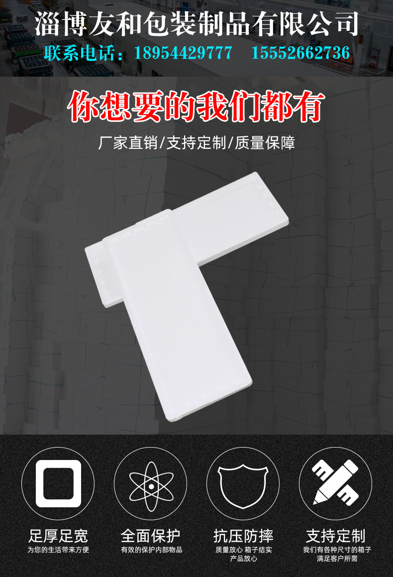 ????淄博友和包裝制品有限公司是專業(yè)的山東泡沫包裝箱加工廠家,本廠主要產(chǎn)品有:泡沫包裝箱,泡沫保鮮箱,水果蔬菜泡沫包裝箱,水果蔬菜泡沫保鮮箱,瓷磚泡沫包裝箱等,產(chǎn)品暢銷全國,深受用戶好評。泡沫包裝定做可以聯(lián)系我們網(wǎng)站 http://www.ejingxin.com/ 上電話,我們會第一時間跟您聯(lián)系。
